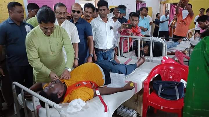 With the initiative of Bharatiya Janata Party Agartala-6 Mandal committee organized Voluntary Blood Donation Camp on the occasion of Bharatiya Janata Party (BJP) Foundation Day at Bt (Basic Training) College Ground, Agartala on Thursday (6th April, 2023). Hon’ble Chief Minister Dr. Manik Saha, Hon’ble Mayor of Agartala Municipal Corporation (AMC) Dipak Majumder, Tripura Pradesh BJP President Rajib Bhattacharjee and many others remained present in the blood donation programme.