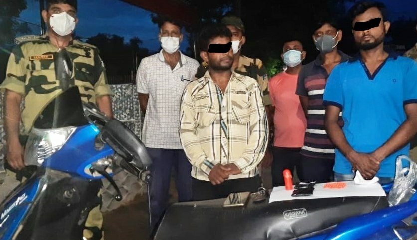 Further, vigilant troops of Border Out Post- Sarasima (200 Bn BSF) apprehended 02 Bangladeshi Nationals namely Mansoor Ahamed @ Reyat (20 yrs) S/o Manir Hussain R/o Vill- Baburkuma, PO & PS- Parshuram, Distt- Feni and Moinur Hossain Rana (34 yrs) S/o Abdul Khalik R/o Vill- Alayarpur, PO & PS- Daganbuhia, Distt- Feni, who were trying to exfiltrate from India to Bangladesh. An FIR has been lodged and apprehended BD nationals along with seized items handed over to PS- Belonia, Sub Div –Belonia, Dist – South Tripura for further legal action.