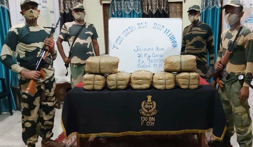 On same night, based on specific information, vigilant troops of Border Out Post- Srimantapur(133 Bn BSF) seized ‘720 Nos Yaba Tablets & 3.5 Kgs Ganja’ in general area under PS- Sonamura, Sub Division- Sonamura, Distt- Sepahijala, Tripura. Similarly, alert Praharis of Border Out Post- New Nidaya(130 Bn BSF) seized 20 Kgs Ganja in general area under PS- Jatrapur, Sub Division- Sonamura, Distt- Sepahijala, Tripura.