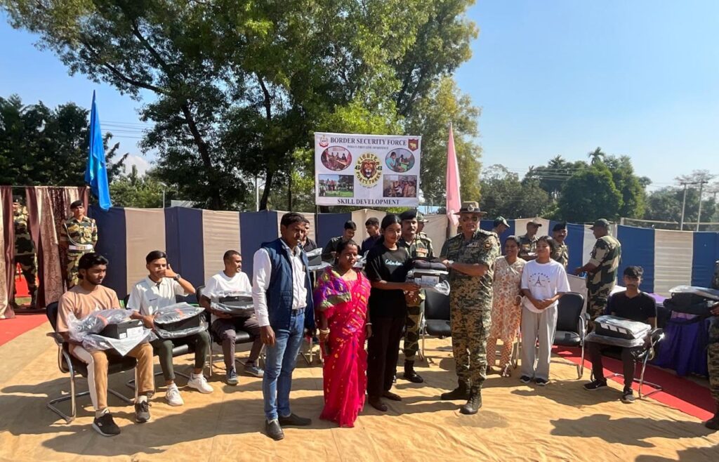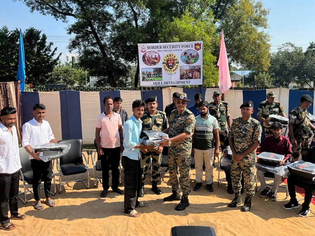 At the outset a cultural show was presented by Chillapathar High School followed by Jawahar Navoday Vidyalaya students . During the programme, 33 Nos motorised sewing machine under Skill development programme were distributed to ladies. Running shoes , track suits , School bags were distributed to the youths who participated in the pre recruitment training organised by 43 Bn BSF.
