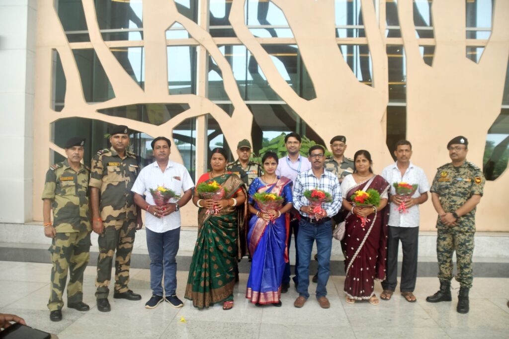 Agartala, Tripura, 13th of August, 2025 : As part of the Government of India’s flagship Vibrant Villages Programme (VVP), the Border Security Force (BSF), Tripura Frontier, accorded a warm welcome and ceremonial send-off to six special guests — Krishna Debnath, Beauty Debnath, Biplab Paul, Pinki Rudra Paul, Tapan Dey, and Lata Dey — from the bordering villages of Tripura, along with one coordinator Sh. Debjyoti Malakar, at Agartala Airport today.