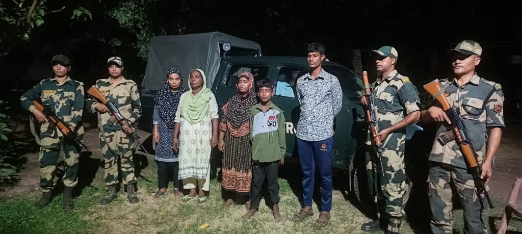 Agartala, 19th of July, 2024 : On 18th July at 2230 hrs based on specific info a special operation was launched by BSF in the border area of Belonia in which 05 Bangladeshi including three female, one male and one boy, were apprehended while trying to illegally enter into Indian territory.