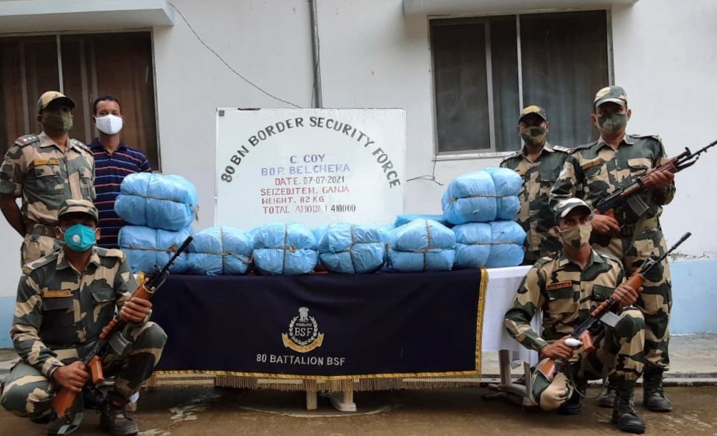In one such operation, acting on specific intelligence input, troops of Border Out Post Belchera, 80 Bn BSF successfully seized 82 Kgs Ganja worth Rs. 4,10,000/-on 07th July 2021.The seized Ganja has been handed over to Police Station- Khowai, Sub Division- Khowai, District- Khowai, Tripura for further course of legal action.