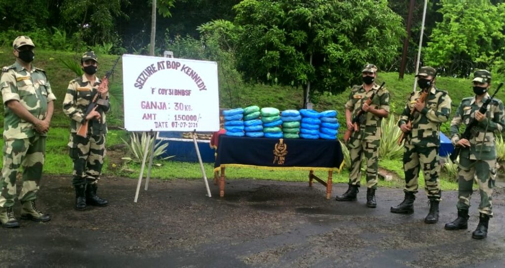 Besides above, in the intervening night of 06/07 July 2021, troops of Border Out Post Srimantapur,133 Bn BSF successfully seized11 Kgs Ganja worth Rs. 55,000/-. The seized Ganja has beenhanded over to Police Station- Sonamura, Sub Division- Sonamura, District- Sepahijala, Tripura.