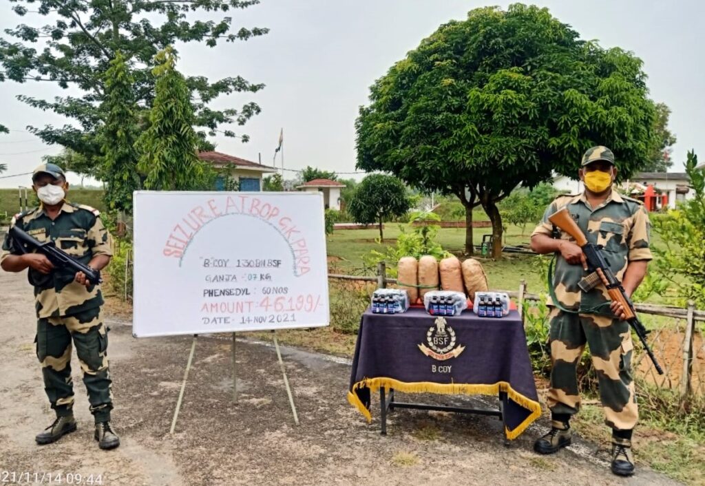 In the series of Special Operations to thwart the trans-border smuggling activities in State of Tripura, BSF has succeeded in seizing 17 Kgs Ganja, 135 Bottles Phensedyl / Eskuf Syrup & other contraband articles, besides rescued 14 Cattle Head shaving combined value of Rs. 16,55,138/- during various operations along the Indo-Bangladesh International Border in intervening night of 13/14 Nov 2021.