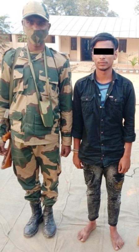 On 17th Jan 2022 (AN) on specific intelligence input, BSF troops of BOP Ashabari, Ex-150 Bn BSF, Gokulnagar apprehended Bangladeshi National namely Mohd Deepu Miah S/o Wahid Miah R/o Vill- Uttar Ashabari, Post- Shashidal, Police Station- Brahmanpara, District- Comila (Bangladesh),while he was trying to negotiating IBBF from BD side. The above apprehended person along with the items recovered from him has been handed over to PS- Kalamchoura, Distt- Sepahijala for further course of action.