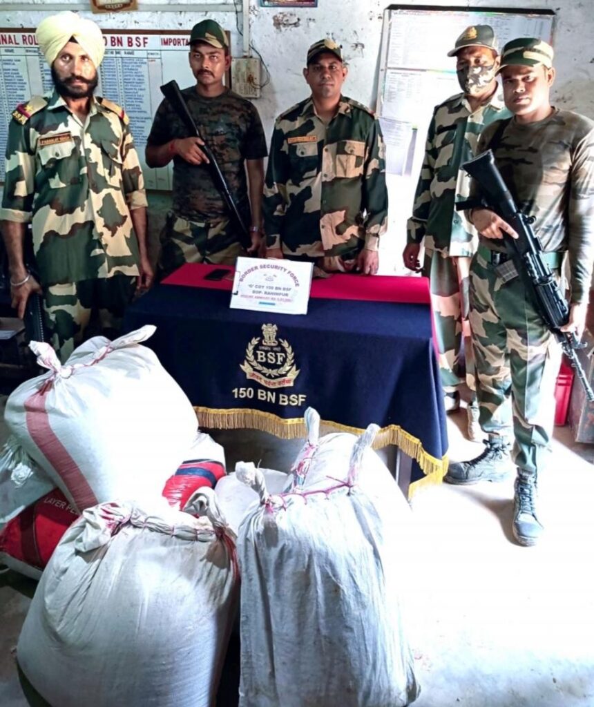 In one of the such Operation on 21st Sept 2021, acting on specific BSF intelligence input, alert BSF troops of BOP Rahimpur, 150 Bn BSF under SHQ BSF Gokulnagar seized 250 Kgs Khas-Khas (Poppy Seeds) worth Rs. 5,87,500/-. The seized contraband is being handed over to Customs Sonamura, Sub Division- Sonamura, Distt: Sepahijala (Tripura).
