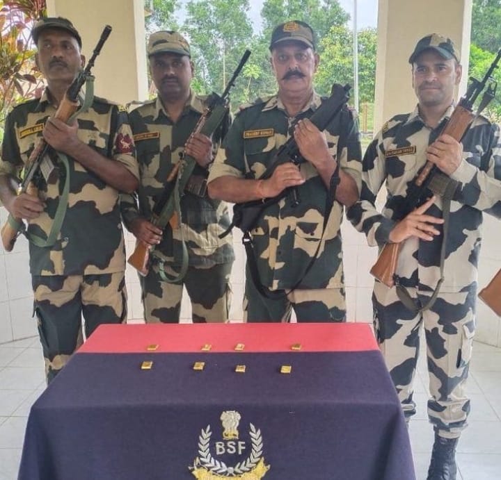 On July 10th, 2023, the BSF received specific intelligence regarding the smuggling of gold within the area of responsibility of 69 Bn BSF at BOP B N Das Para. Promptly acting on the information, BSF troops were alerted and deployed at the location carrying out a special operation and recovering four packets suspected to be gold biscuits. The seized gold weighs approximately 1165 grams and 705 milligrams, with an estimated value of Rs 70,44,325. The disposal of seized gold has been done as per procedure.