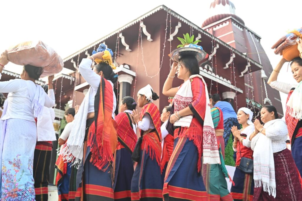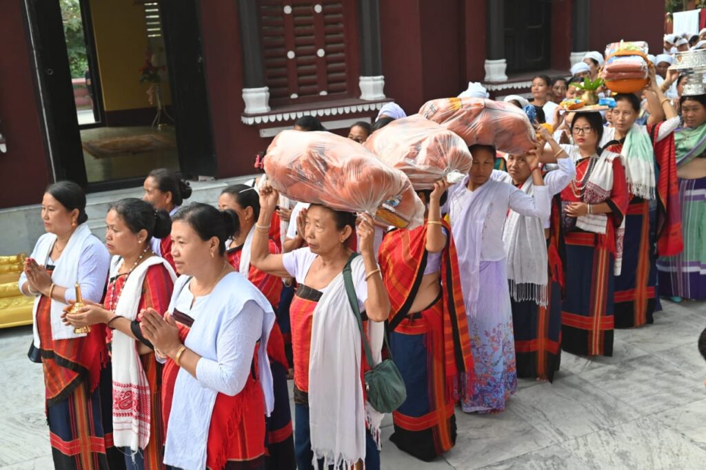 Buddhists celebrated in the Kathin Chibar Dan festival, one of the main religious festivals of the Buddhist community at Venuvan Budha Vihar, Kunjaban in Agartala on Saturday (4th November, 2023). Kathin Chibar Dan – the literal meaning of which is offering of difficult monk robe is an annual religious festival during which Buddhist donates different items for the living of the monks including their robe made out of the cloth weaved in their own looms.