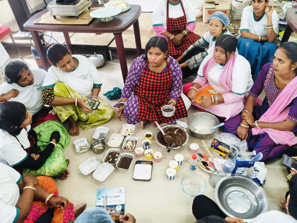 The training covered preparation of a wide range of fast food and bakery products including fruit cakes, chocolates, biscuits, namkeen items, cupcakes, jar cakes, and other popular snack items. Hands-on practical sessions were conducted by Master Trainer Ms. Chaiti Dey, enabling participants to gain real-time production skills.