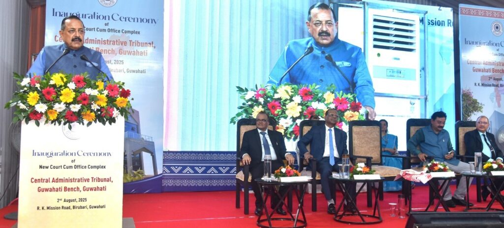 New Delhi, Delhi, 2nd of August 2025 : Inaugurating the new Court-cum-Office Complex of the Central Administrative Tribunal (CAT) in Guwahati today, Union Minister of State (Independent Charge) for Science and Technology; Earth Sciences and Minister of State for PMO, Department of Atomic Energy, Department of Space, Personnel, Public Grievances and Pensions, Dr. Jitendra Singh described the development as a reflection of the remarkable transformation witnessed by the North East over the past decade.