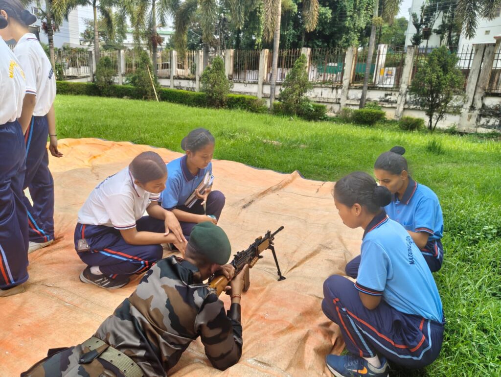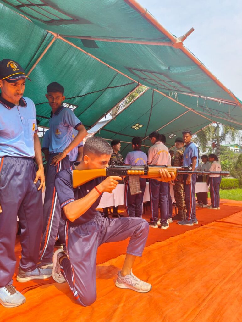 Cadets then attended a Weapon Display session by Assam Rifles, where they gained valuable knowledge about various weapons and their operational use. This was followed by classes on Kish & Hitches and FC & BC training, enhancing their technical and fieldcraft skills.