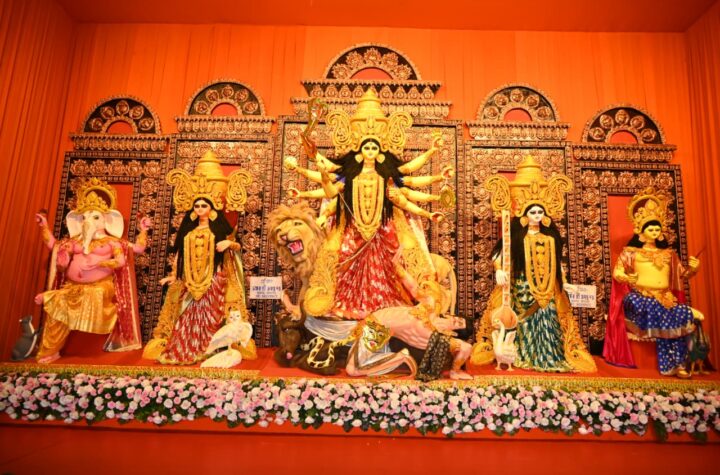 Agartala, Tripura, 1st October, 2025 : Netaji Play Forum (Centre) Club’s Goddess Durga Idol and Puja Pandal at Netaji Chowmuhani, Agartala, Tripura.