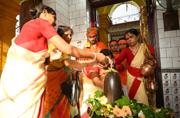 Agartala, Tripura, 11th of August 2025 : Devotees offer prayers to Lord Shiva on the holy month of ‘Shravan or...