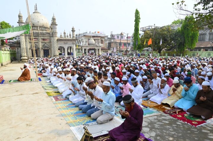 Agartala, Tripura, 31st of March 2025 : Muslim devotees prayers at the Gedu Mia Mosque on the occasion of Eid-ul–Fitr...