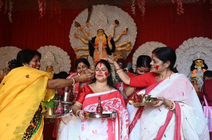 Agartala, Tripura, 13th of October 2024 : Sindoor Khela on the occasion of Vijaya Dashami at Agartala on Sunday (13th...