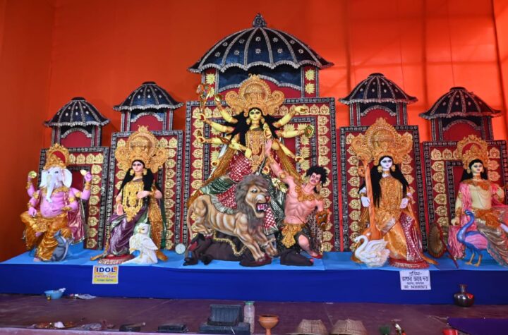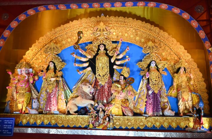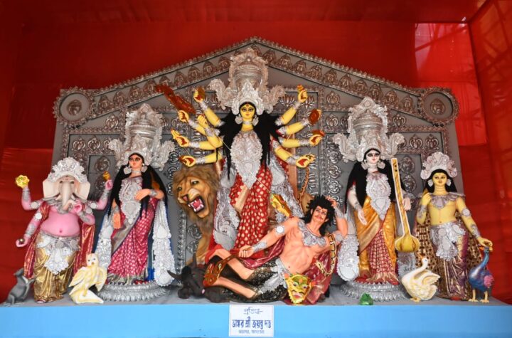 Agartala, Tripura, 12th of October 2024 : Dashamighat Club’s Goddess Durga Idol and Puja Pandal at Jaynagar, Agartala, Tripura.