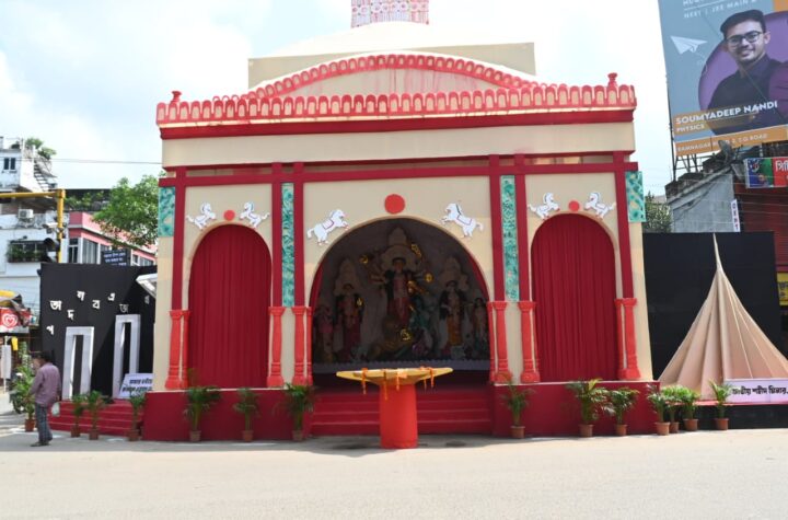 Agartala, Tripura, 12th of October 2024 : Surjya Turan Club’s Goddess Durga Idol and Puja Pandal at Durga Chowmuhani, Ramnagar, Agartala, Tripura.