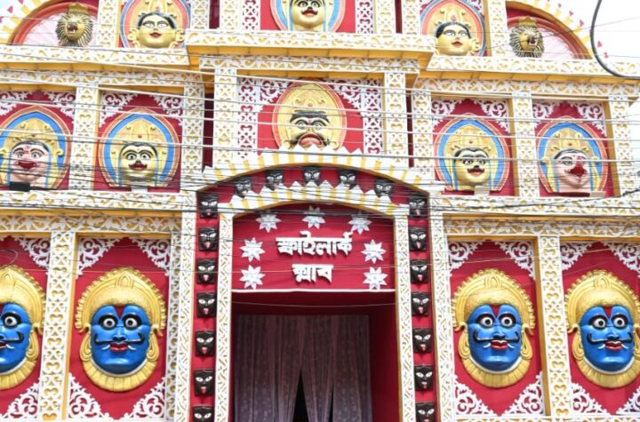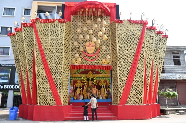 Agartala, Tripura, 12th of October 2024 : Skylark Club’s Goddess Durga Idol and Puja Pandal at Agartala, Tripura.
