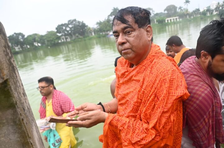 Agartala, Tripura, 2nd of October 2024 : Hindu devotees perform ‘Tarpan’ rituals for the souls of their departed ancestors during...