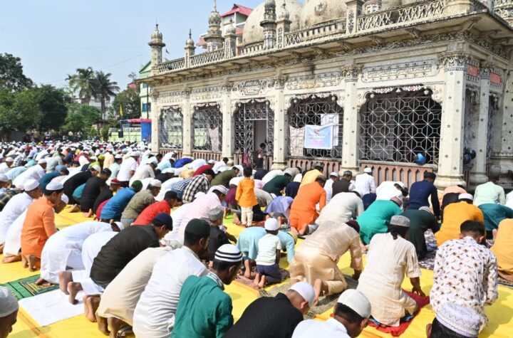 Agartala, 11th of April, 2024 : Muslim devotees prayers at the Gedu Mia Mosque on the occasion of Eid-ul–Fitr at...