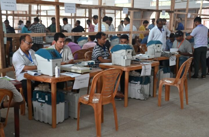 Agartala, 7th April, 2024 : Election officials check Electronic Voting Machines (EVM) ahead of the forthcoming Lok Sabha elections and...