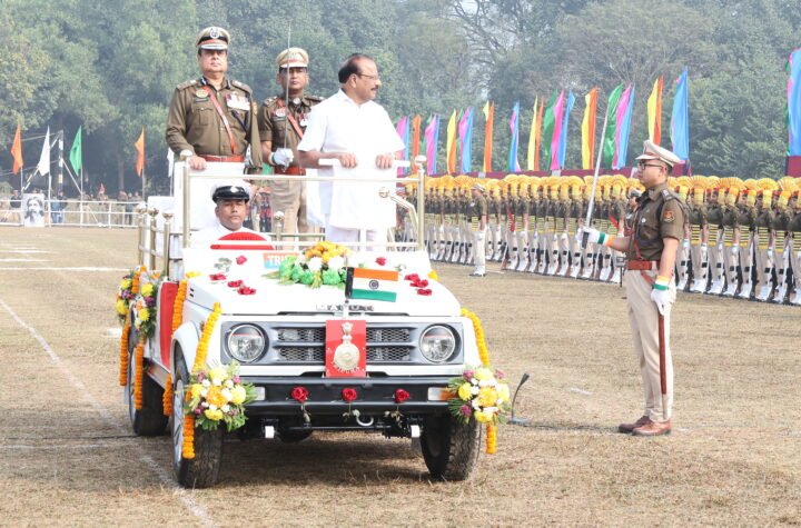 Agartala, 26th of January, 2024 : Hon’ble Governor of Tripura Indrasena Reddy Nallu inspects the guard of honour at 75th...