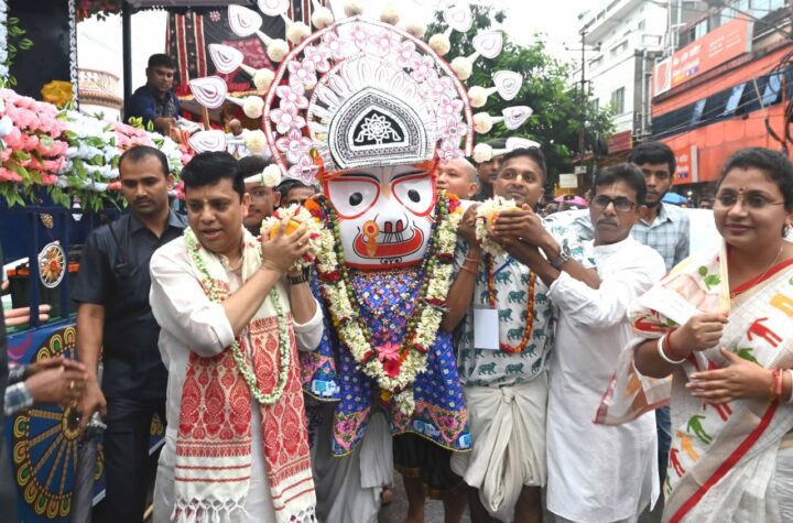 Hon’ble Youth Affairs & Sports, Social Welfare & Social Education, Labour Minister Tinku Roy carrying Lord Jagannath on the occasion...