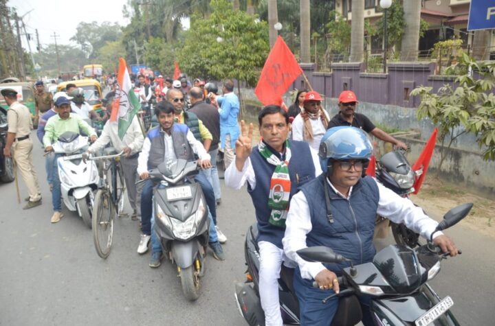 Aiming to upcoming Assembly election 2023 Congress and CPI(M) jointly organized a bike rally at Banamalipur-9 Assembly Constituency on Thursday...