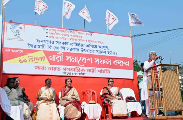 With the initiative of CPI(M) women wing ‘Ganatantrik Nari Samity’ organized rally in the premises of Rabindra Satabarshiki Bhawan, Agartala...