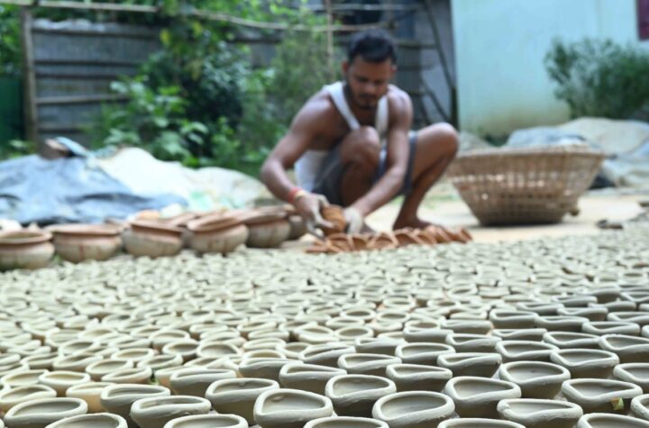 Potter prepares clay lamps for sale ahead of the Diwali festival in Agartala on Thursday (20th October, 2022).