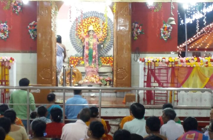 Santan Sangha Kali Temple (Kali Mandir) decorated with dazzling lights on the occasion of Diwali Festival at Indranagar, Agartala on...