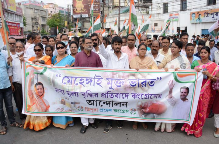 “Mehngai Mukt Bharat Abhiyan” organized by Tripura Pradesh Congress at Agartala on Tuesday (19th April, 2022). Congress activists held a...