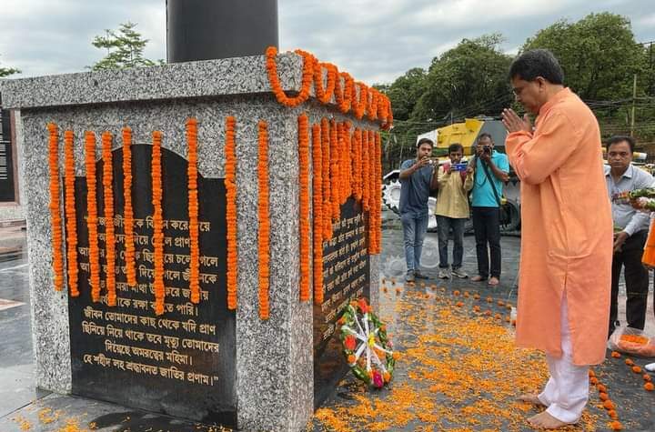 Hon’ble MP and BJP President of Tripura Pradesh Dr. Manik Saha paid homage to the Martyrs at Martyrs Memorial, Albert...