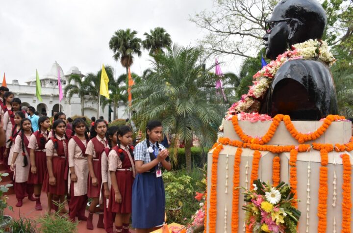 Students paid tributes to Dr. BR Ambedkar on his Birth Anniversary at Ujjayanta Palace (Tripura State Museum), Agartala on Thursday...