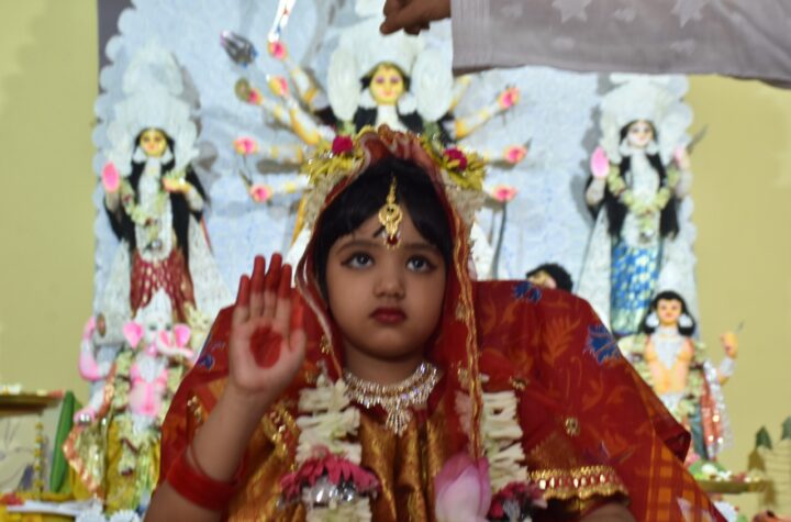 Kumari Puja on the occasion of Maha Ashtami celebrations of Basanti Durga Puja at Anandamayee Ashram, Agartala on Saturday (9th...