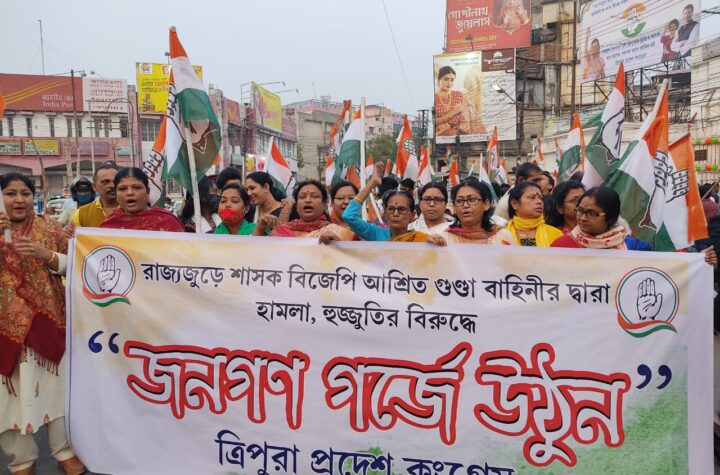 Tripura Pradesh Congress on Thursday (24th February, 2022) organized a protest rally to against the attack on Congress activists.