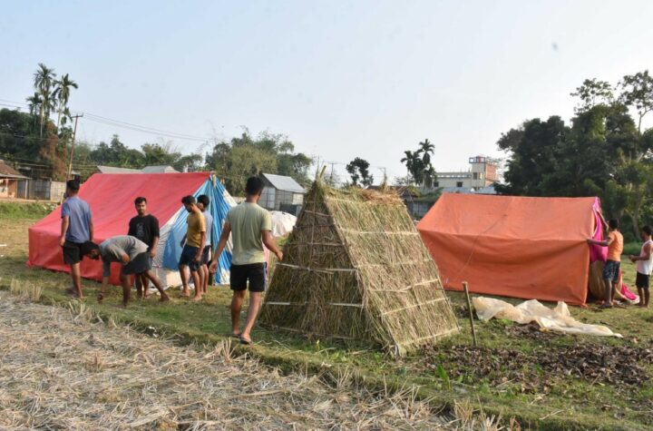 Preparations for traditional Burir Ghar at a remote village in Tripura.