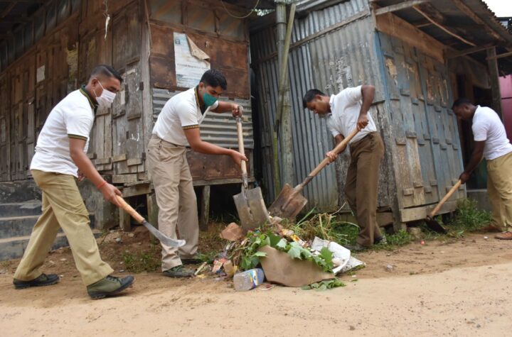 Tripura Police & 7 Bn Tripura State Rifles cleaning the bazar, hospital during a Swachh Bharat Abhiyan event on Gandhi...