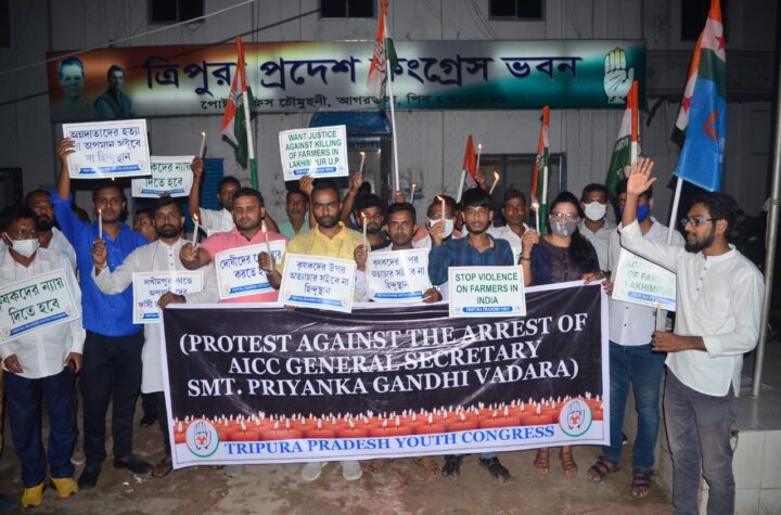 Tripura Pradesh Youth Congress, NSUI leaders and workers on today (4th October, 2021) join the candle march protesting against the...