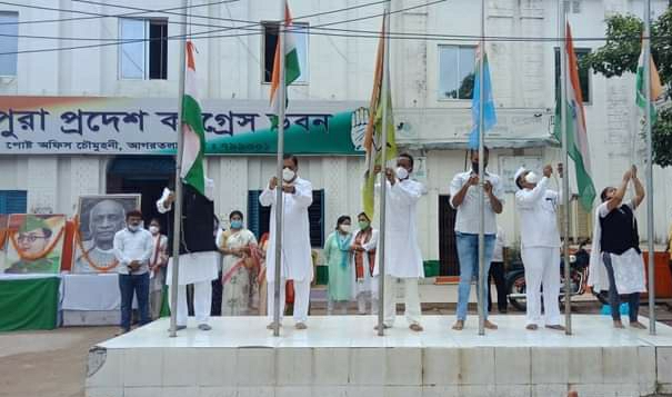 Hoisted National Flag on the occasion of 75th Independence Day at Agartala Congress Bhavan, Post office Chowmuhani. Tripura Congress President...