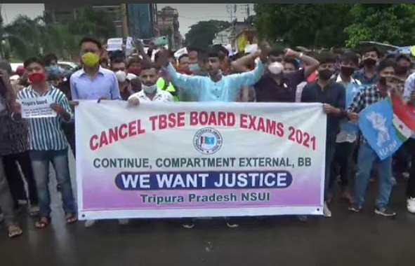 NSUI (Tripura Pradesh) Protest Today (15th July, 2021) in Agartala Demanding Cancellation of Continue, Compartment, External Board Exams 2021.