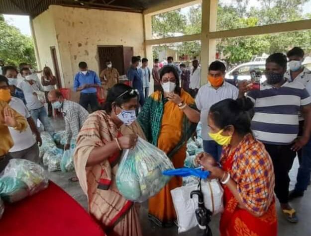 MP Pratima Bhoumik distribution of food packets among the poor families for the Covid situation in Jirania on Today.