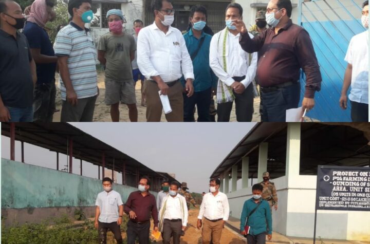 Chief Executive Member Purna Chandra Jamatia, Kamal Kalai and officials were visited Pig and Poultry Farm at Belbari in ADC...