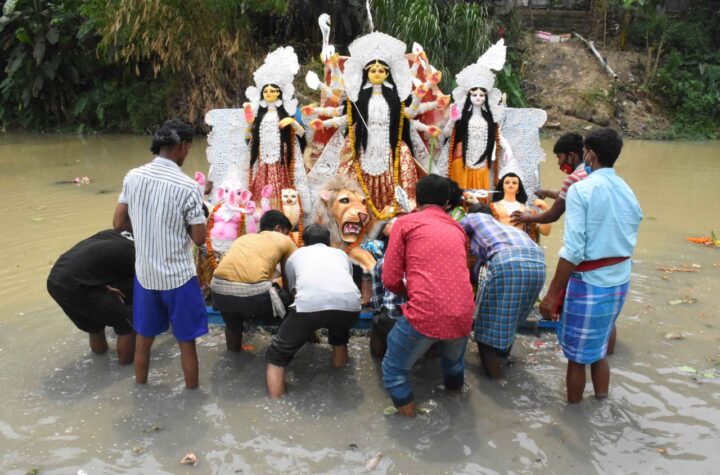 Idol of Goddess Basanti (Durga) on the occasion of Vijaya Dashami. Basanti (Durga) being taken for abandonment. Agartala 22nd April...