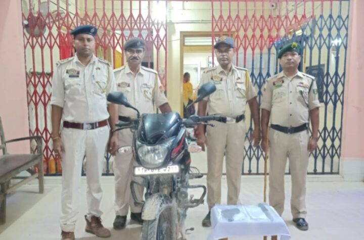 Sonamura,Tripura, 28th of October 2025 : Sonamura Police recovered revolver (pisto), a sharp knife, and a pulsar bike on Monday...