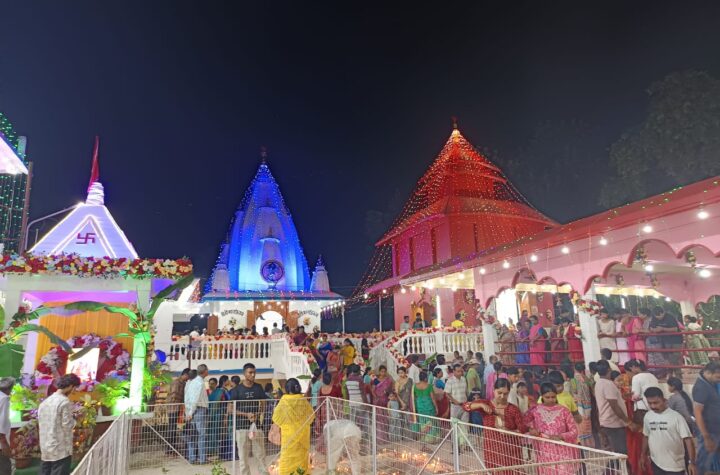 Agartala, Tripura, 19th of October, 2025 : Santan Sangha Kali Temple (Kali Mandir) decorated with dazzling lights on the occasion...
