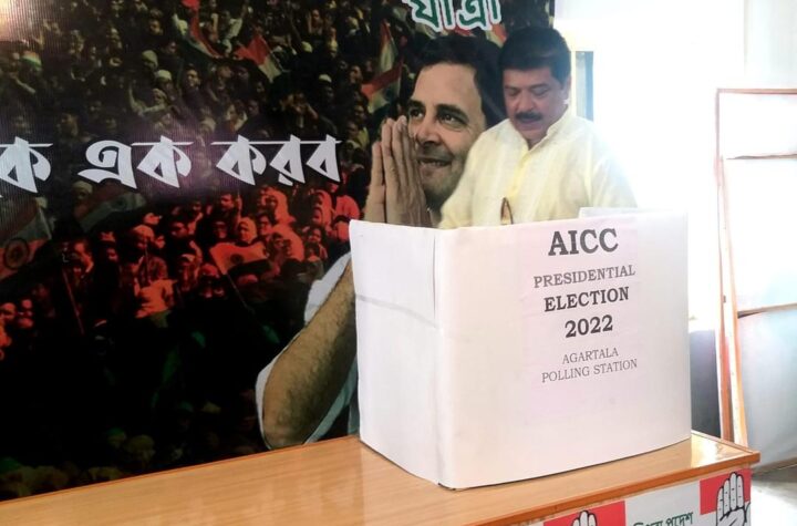 Tripura Pradesh Congress activists Cast Vote for Congress Presidential Polls at Congress Bhavan, Post office Chowmuhani, Agartala, on Monday (17th...