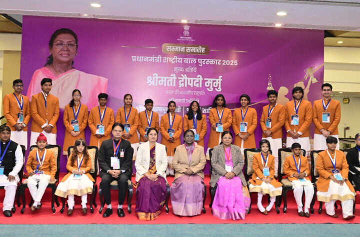 New Delhi, Delhi, 26th of December, 2025 : The President of India, Smt Droupadi Murmu, conferred the Pradhan Mantri Rashtriya...