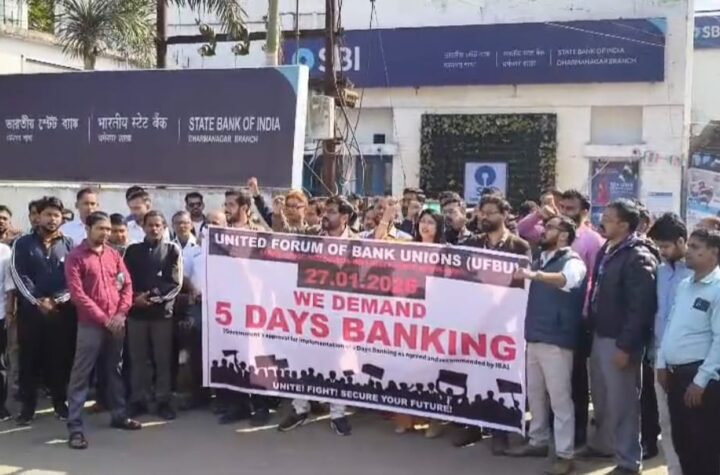 Dharmanagar, Tripura, 27th of January, 2026 : In line with nationwide protests, bank employees in Dharmanagar of North Tripura district...